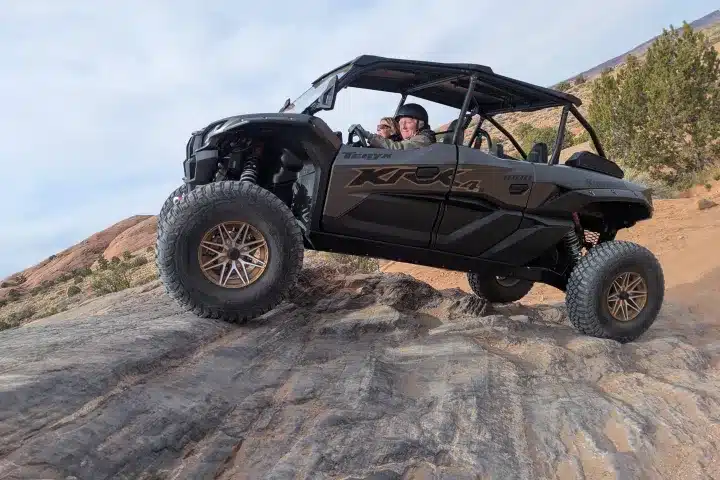 A: High-clearance, 4×4 vehicles with good traction, especially for Hell’s Revenge. UTVs like the Kawasaki KRX 1000 are well suited; Jeep Wranglers with proper off-road setup are also common. Outlaw furnishes Jeep and UTV options.