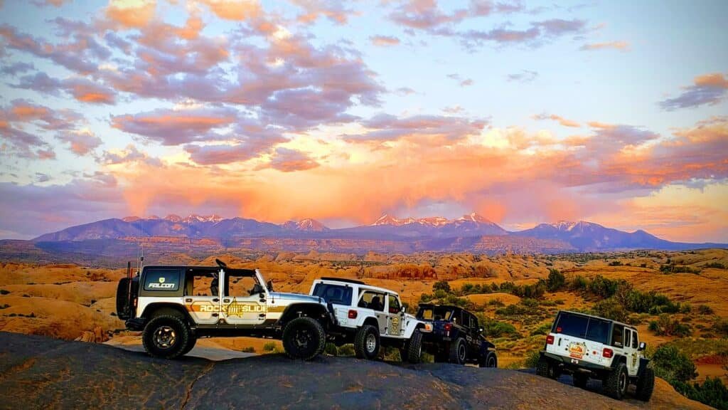 Moab’s red rock landscapes are breathtaking at any time of day—but during sunset, they become truly unforgettable. As the sun dips low over the desert, the cliffs ignite with golden hues, shadows stretch dramatically across slickrock formations, and the sky transforms into a painter’s palette of warm colors. For those seeking a one-of-a-kind UTV or Jeep experience, sunset is the ideal time to explore Moab’s trails.